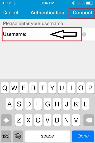 در قسمت یوزرنیم ، نام کاربری دریافتی از فروشگاه را وارد کرده و بر روی Connect کلیک کنید.