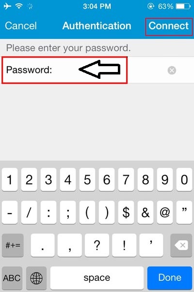 در قسمت پسوورد ، کلمه عبور دریافتی از فروشگاه را وارد کرده و بر روی Connect کلیک کنید.
