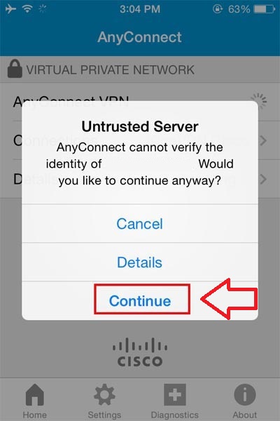 اگر پیام زیر را دریافت کردید، بر روی Continue کلیک کنید.