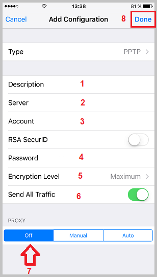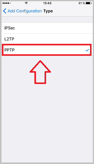 مراحل استفاده از PPTP در آی او اس: