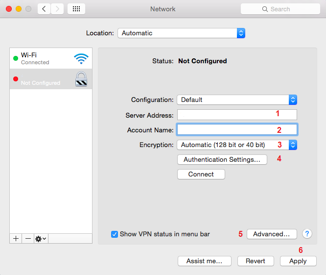 ۱ : یکی از آدرس های دریافتی پس از خرید و مربوط به “سرویس PPTP” را انتخاب کرده و در این قسمت وارد کنید.