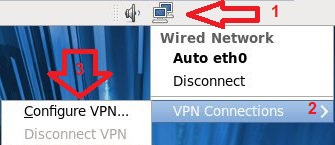 از روی دسکتاپ بر روی آیکون Network Manager کلیک کرده و از زیر منوی VPN Connections گزینه Configure VPN را انتخاب کنید.